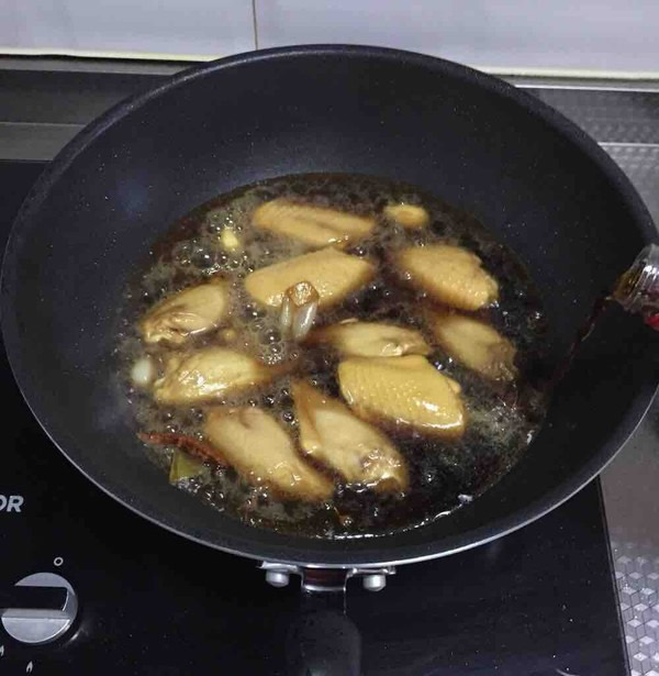 4 倒入可乐,没过鸡翅(我用的瓶装可乐,大概2听的样子)