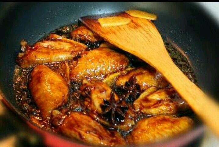 6用大火收汁,收汁的时候要用铲子不停的翻动,直到鸡翅表面裹上焦糖色