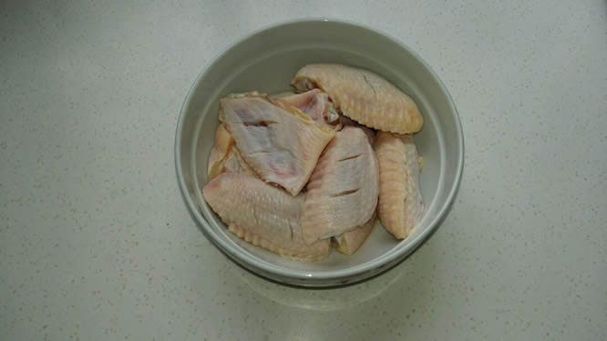 1鸡中翅洗净沥干水,在鸡翅的两面用刀各划两刀便于入味。9个鸡翅就是36刀,所以叫36刀可乐鸡翅,名字很响亮,有木有?哈哈