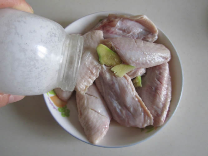 1. 鸡翅提前加入盐、料酒和姜片腌制一下,码入底味同时去腥;