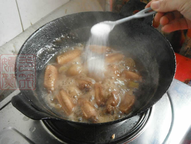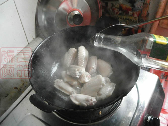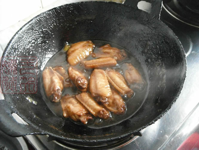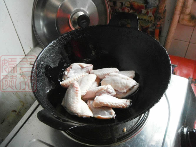 4下入鸡翅,翻炒上色,