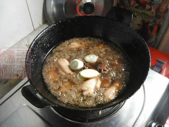 8加入葱段、姜片和八角,
