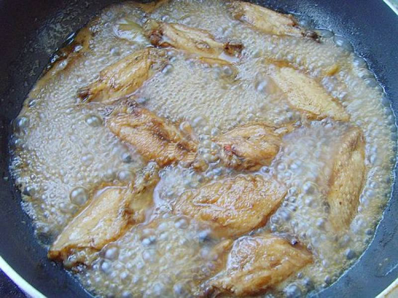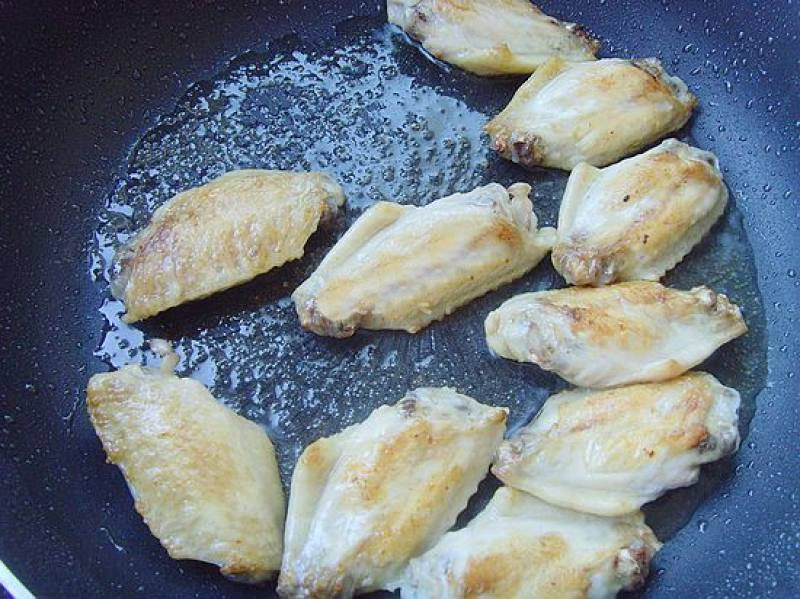 3锅内放少许油烧热,放入鸡翅。
