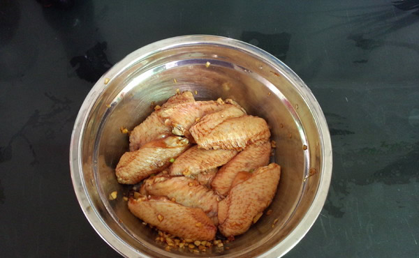 3、尽量买个头小一点儿的鸡翅,有些大鸡翅上有好多黄色的油,影响味道进入肉中,不要用鸡胸等肉多的部位去做,光用翅中是最好的。