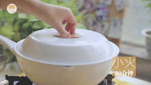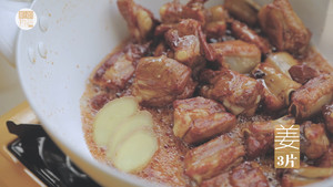 13倒入调味汁, 转小火加盖煮30分钟。(厨娘tips:记得小隔一段时间打开锅盖看一眼翻动一下,千万不要烧干啦!没有汤汁的排骨就不好吃咯)