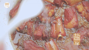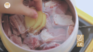 11加入300ml热水。(厨娘tips:炖肉一定记得加热水,全开的最好哦!冷水会让排骨收缩肉质变硬)