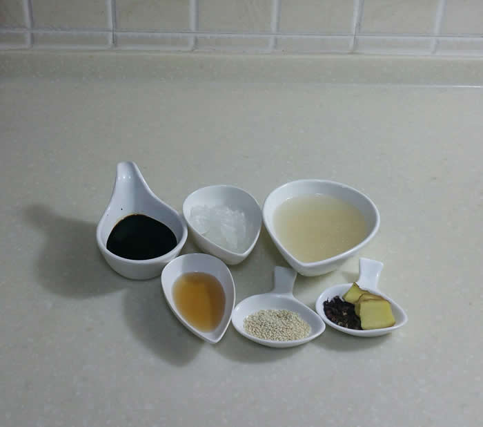 5准备好调料3:(小碗中的生抽、酱油 和醋混合成酱油醋)