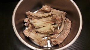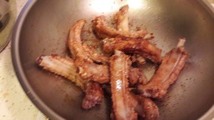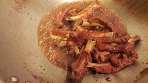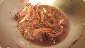 6倒入瀝乾的排骨,翻炒,使其上色,此時都維持小火。