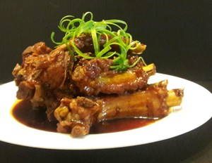 11裝盤後,再切點蔥絲裝飾。 一道甜中帶酸的糖醋排骨上桌了。
