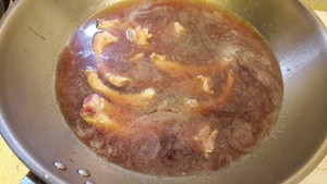 9開大火煮滾後,轉小火,約煮40至50分鐘,湯汁少於4分之1時,就準備收汁了。