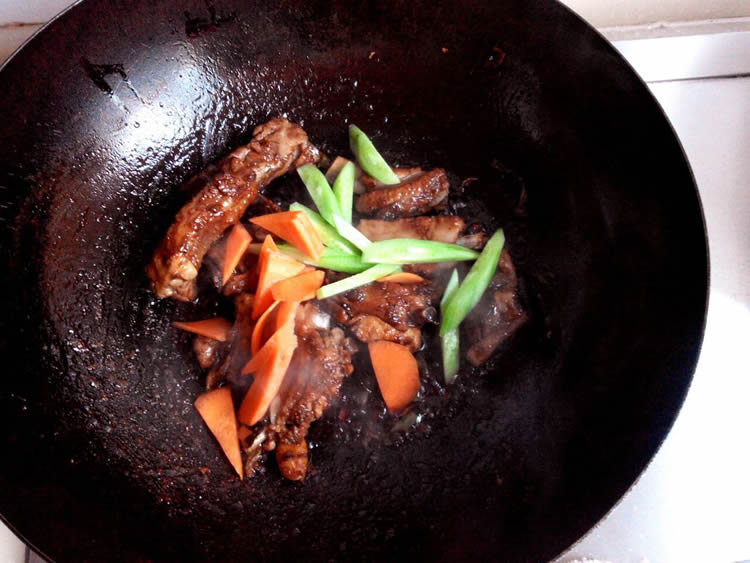 6汤汁浓稠些时放入黄瓜片和胡萝卜片