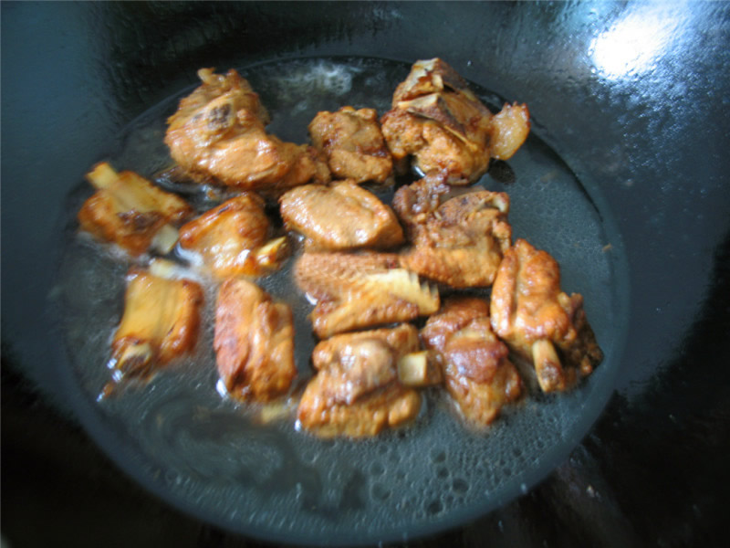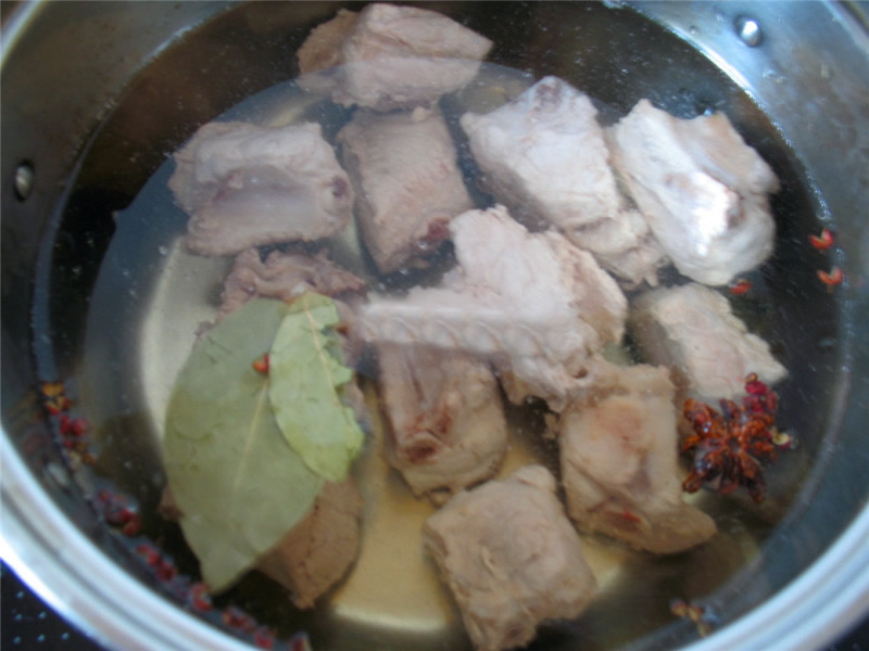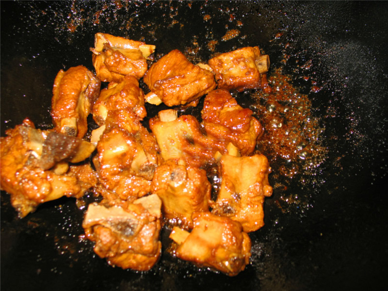 导读:将多余油倒出,锅内留少许油,加入3汤匙白糖、少量肉汤,一点点盐(腌制时候已经加了盐,不要加多)加入排骨中小火煮5分钟。