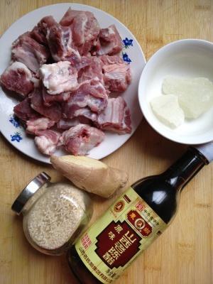 1肋排500克、冰糖50克、生姜15克、陈醋40克、芝麻少许