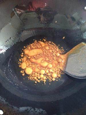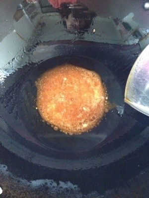 6冰糖已经融化了,不停快速地用锅铲转圈滑动糖油,糖色会有以下三个阶段: