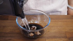 2将话梅、料酒、生抽和香醋混合,倒入一碗清水(约300ml),混合后静置片刻