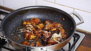 7待排骨煮软后,开盖转大火收汁,起锅前烹入几滴醋拌匀