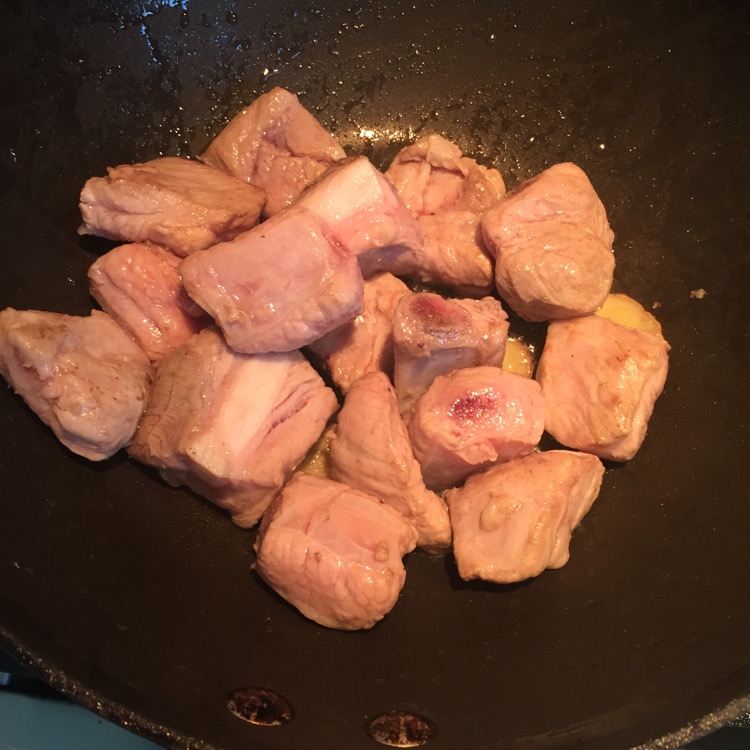 8等糖变成这样就把排骨倒进去