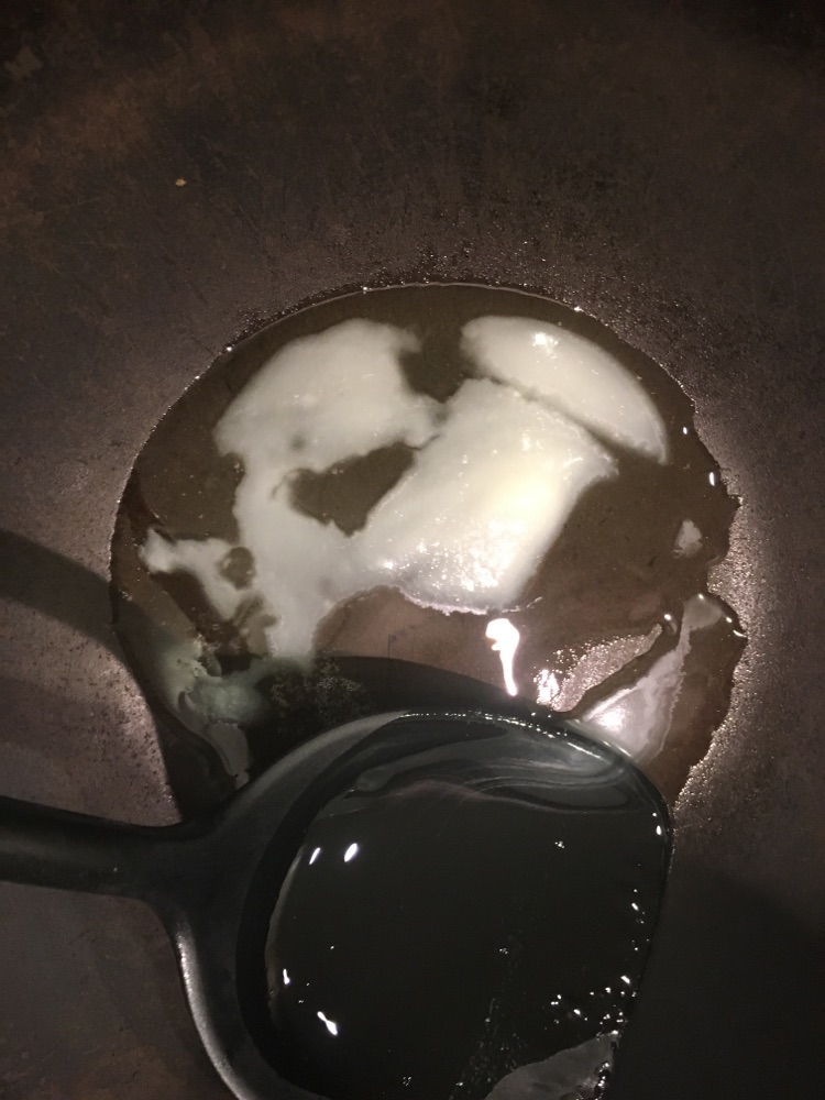 7锅里放少量猪油,放白糖,用小火融化
