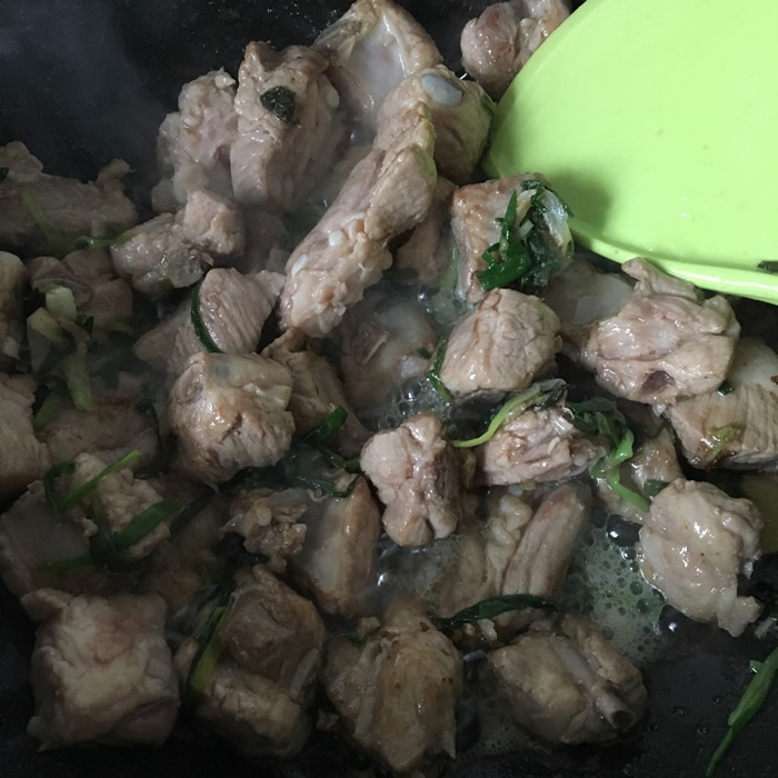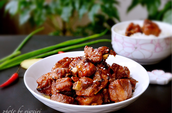1.排骨没飞水,喜欢飞水的就飞下,没谁规定一定要飞水,飞水的作用就是去腥,烧的过程中加了姜片和黄酒,有去腥的作用。2.放葱烧有人会说烂了,放油锅炒到变色出香味,成品可以自己尝下烂不烂,其实那葱比排骨好吃。3.443说的是糖、香醋、生抽比例