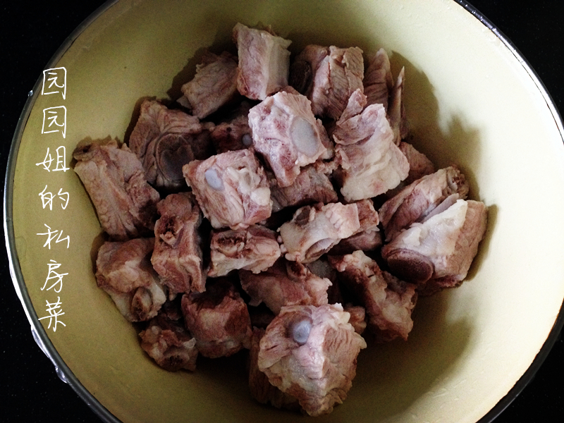 2将煮好的排骨捞出后再用清水冲洗一遍,控干水分备用。
