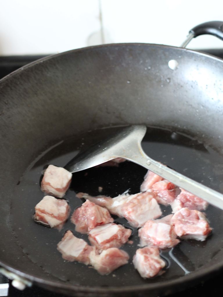 2、不用加盐!最后汤汁要收干,要不排骨"挂"不住味道;最后收汁阶段不能糊锅,免得糖炒焦发苦。