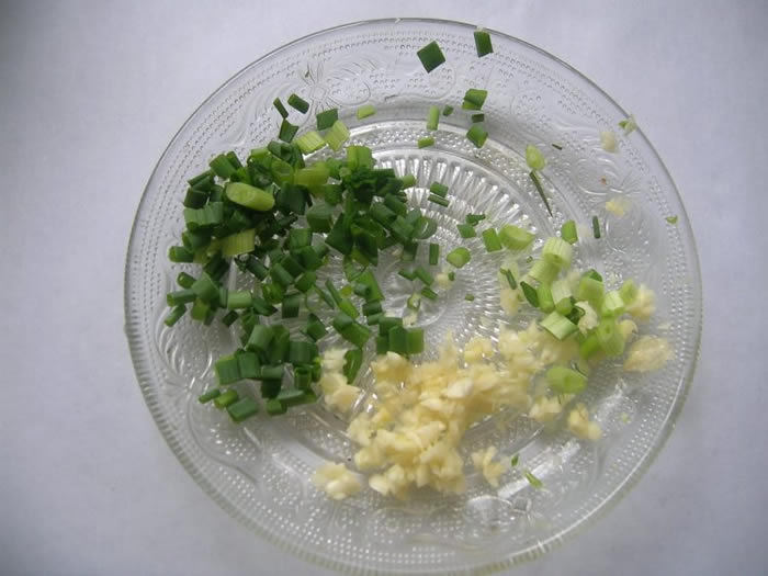 1蒜剁碎,葱切颗粒