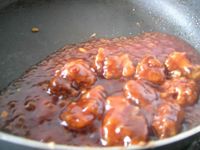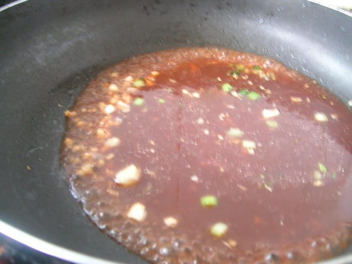 7加入番茄酱、糖、醋、水、盐烧开