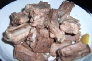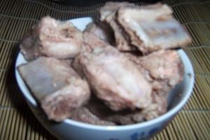 1猪小排剁成小块,焯水。