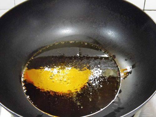 2、炒糖色的重点是控制火,火太小糖化得慢,火太大容易炒糊,所以中火比较适合,炒得糖化后必须用中火,随着不停翻炒糖色会越来越深,变成接近酱油色时就立即倒入排骨,再等糖色就发黑了。