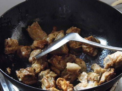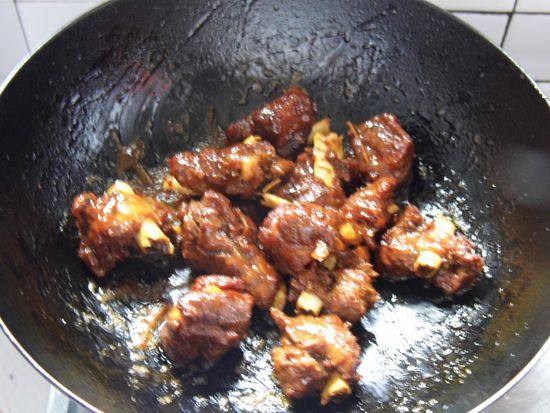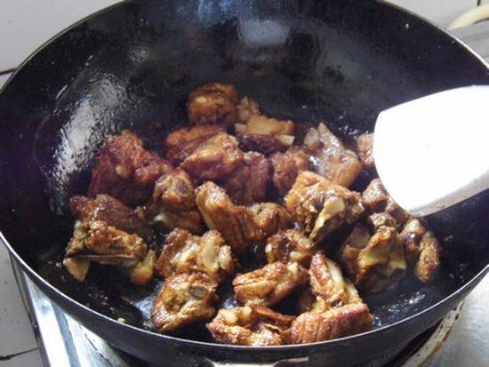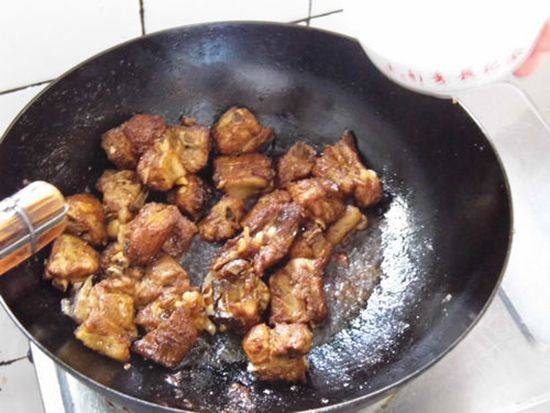 4立即倒入排骨,翻炒。
