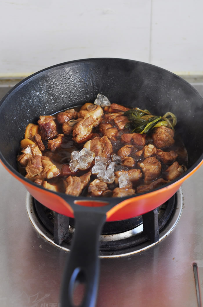 7放入冰糖大火煮到冰糖完全融化。调入盐,收汁。