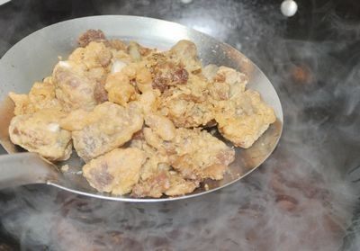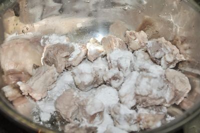 导读:将上好浆的排骨入中油中煎炸至外表微干金黄,再沥油出锅备用。