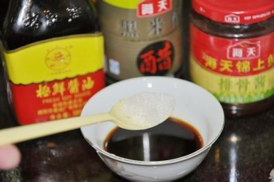 6用白砂,米醋,排骨酱及酱油调成酱汁。