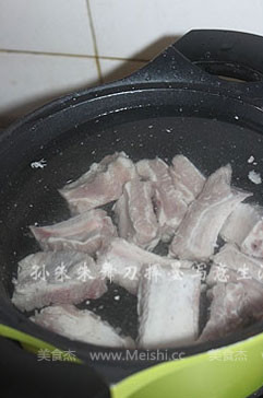 1将排骨剁成长约5厘米的段,然后洗干净放入锅中加上水没过排骨