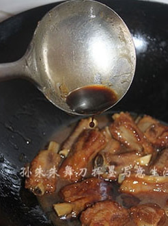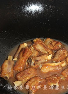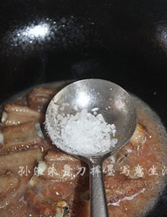 10放入盐、冰糖或白糖50克,花椒粉少许,改小火慢炖,如果你觉得你做的排骨颜色不够深,可以滴几滴老抽
