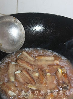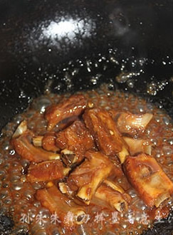 9放入煮排骨的汤200克,将炸好的排骨也放进去