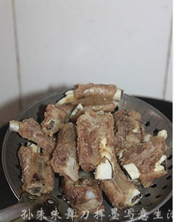 6中大火将排骨炸到变色就可以捞出控油,不要炸的太干