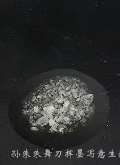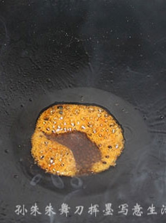 7将锅里的油倒出去,留点底就可以了,然后放入20克冰糖改小火慢慢的融化冰糖