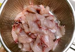 3将鱼充分沥干水分,放入好人家酸菜鱼腌鱼料包用手抓匀腌制五到十分钟