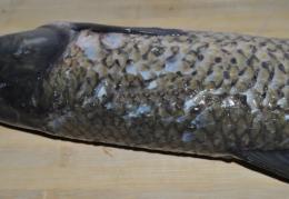 1鲤鱼一条一斤多至一斤半为佳,洗净去鳞去内脏,注意不要弄破苦胆