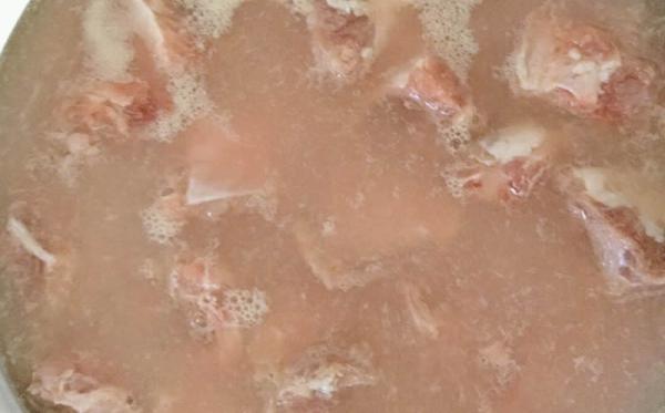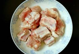 2煮锅烧开水,把排骨焯烫一下捞出