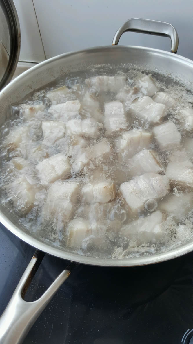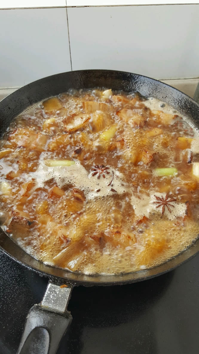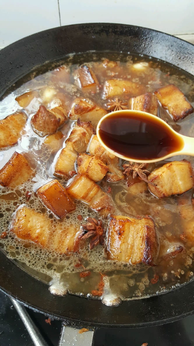 9水要抹过五花肉。这时放生抽和八角。