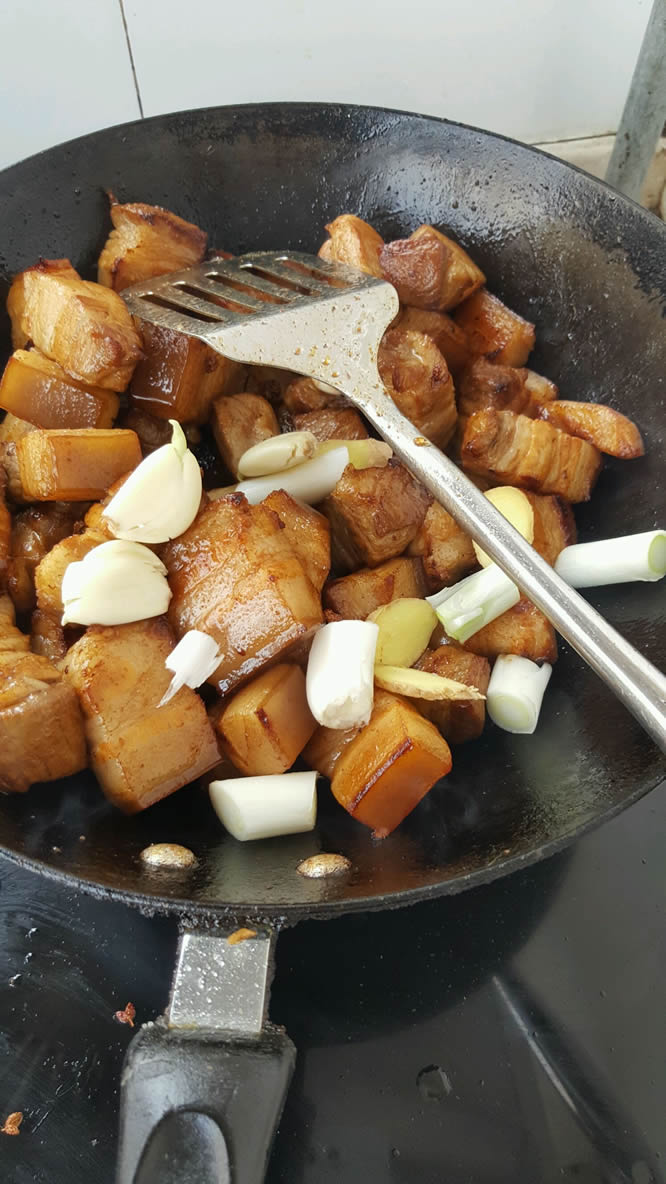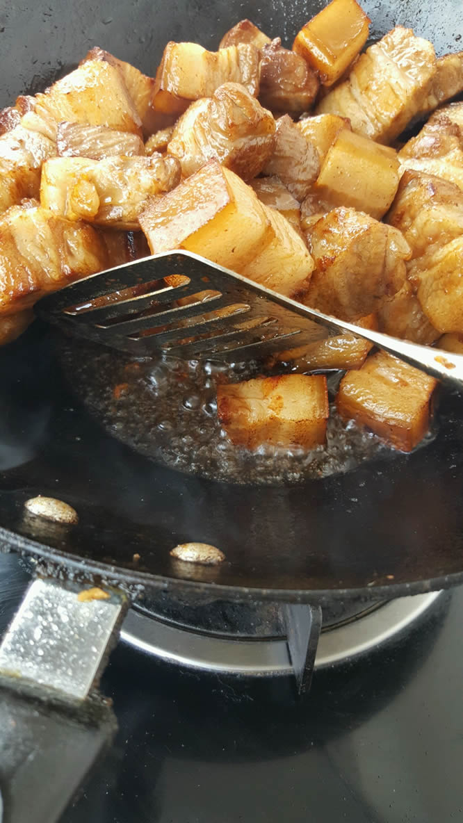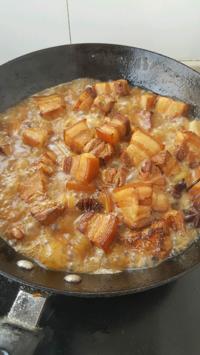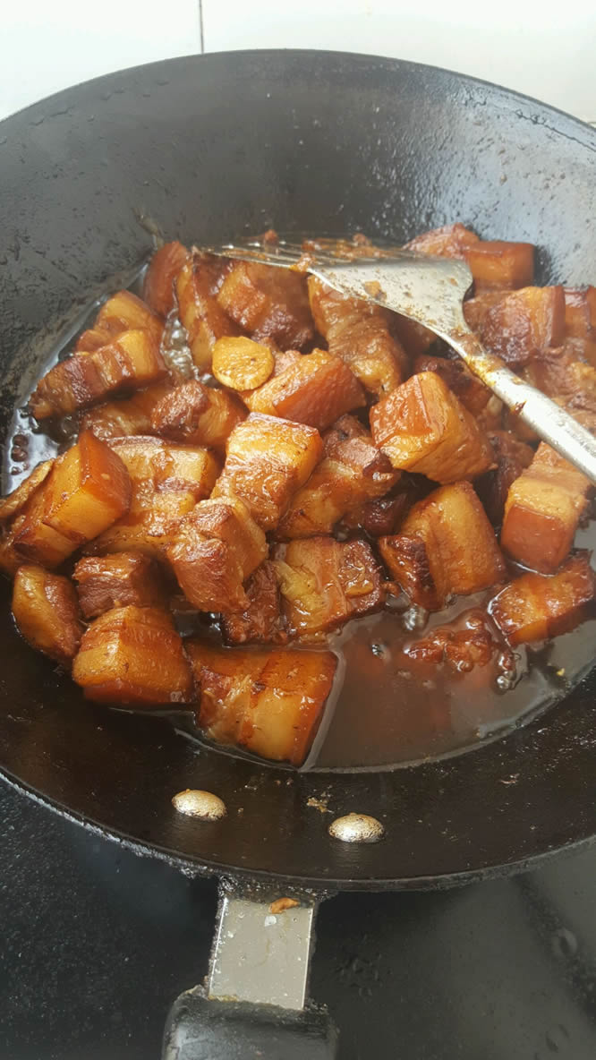 煸炒必须到位是这道菜好吃的关键。所以为了美味就不停翻炒翻炒胳膊肘累点吧!吃不完的肉下顿加点白菜粉条味道也超赞。我做的量大我家人又都爱吃红烧肉这是5人吃的最后剩了4块。家里人少的话肉减半。