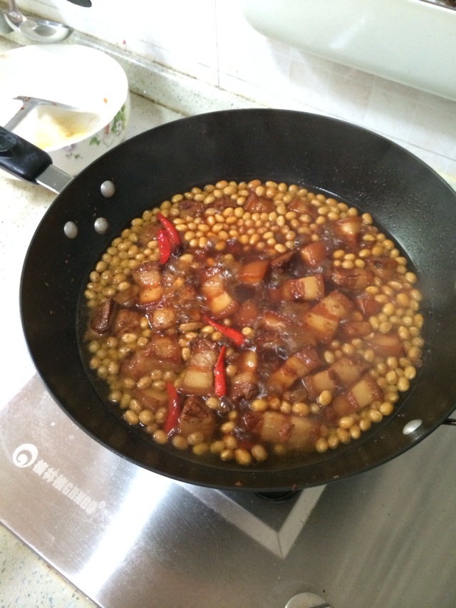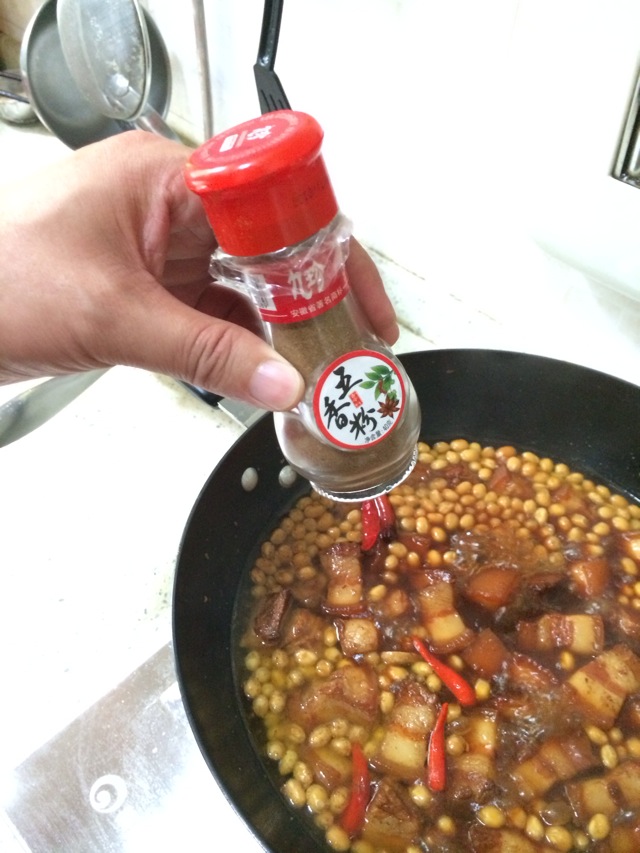 10加五香粉 姜 辣椒 和黄豆 文火焖煮至汤收干 黄豆要先水发