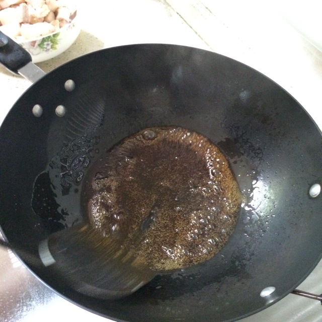 7炒至金黄色 这个时候已无大气泡了 有焦糖味就差不多了