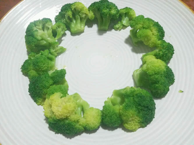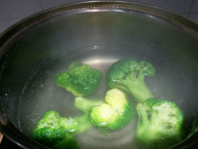 9烫几颗西兰花,也可以用青菜,记得水里放些盐