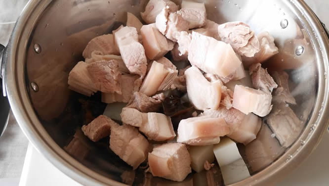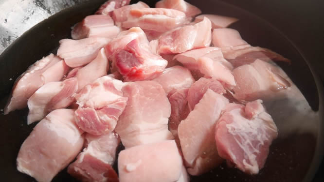 2将猪肉放冷水里煮开5分钟过水捞出洗净