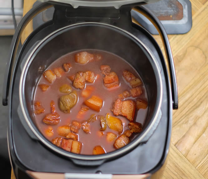 因为放了自己腌渍的咸青梅,煮的时候水果酶嫩化了肉质,