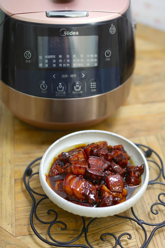 8待程序再一次完全结束后,打开锅盖,倒入1大匙生抽,尝尝味道,爱甜的可以再加一匙白糖。翻拌均匀后盖上锅盖,按"收汁入味"键收汁,程度结束后即可打开锅盖装盘食用了哦!