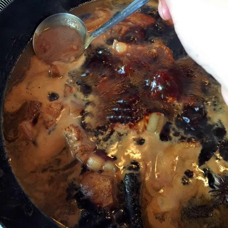 13煮至汤汁剩一半时可加少许蜂蜜使肉质鲜嫩亮泽